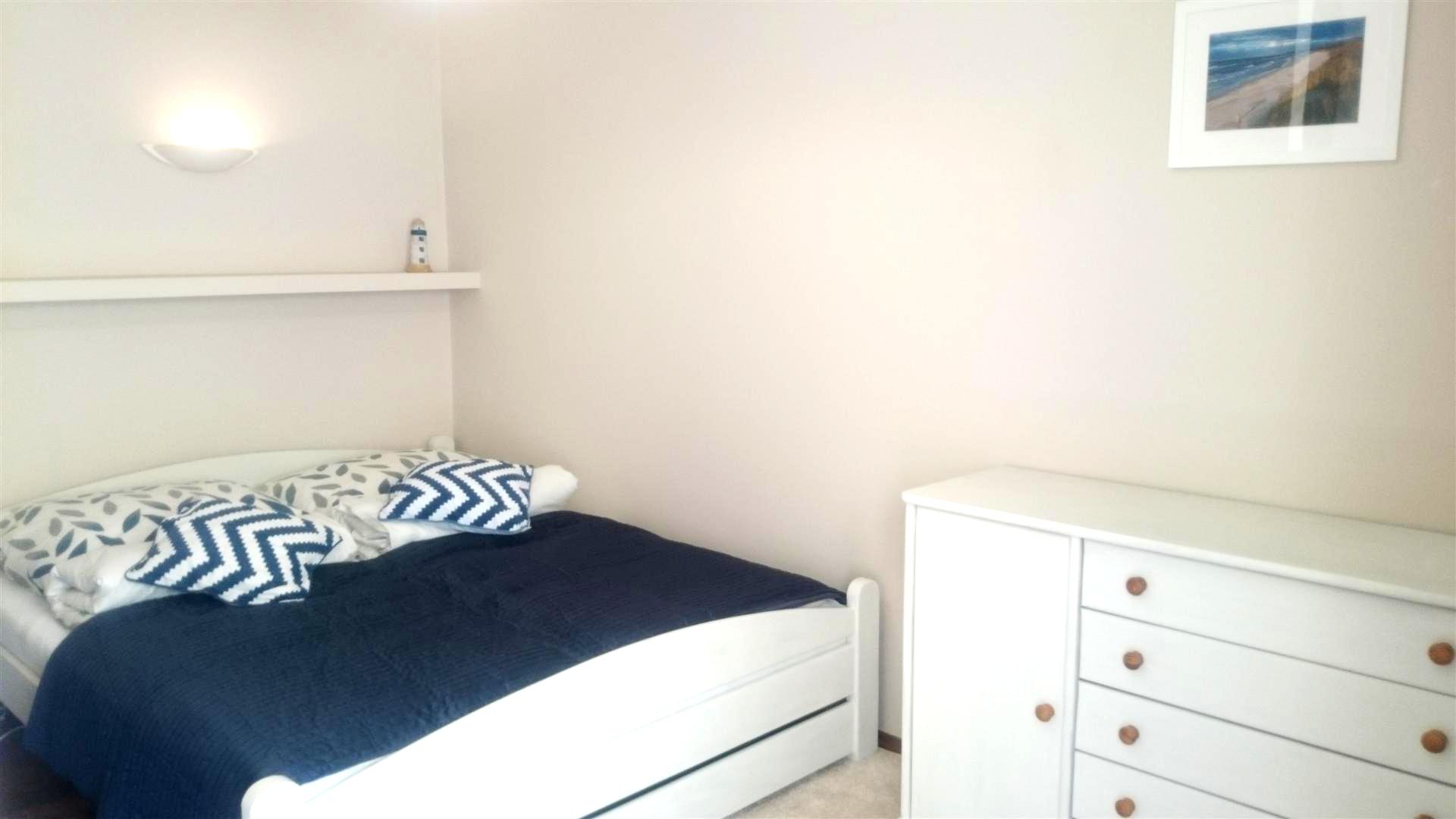 - sypialnia I (2 pojedyncze łóżka: 80x200cm z możliwością połączenia w jedno duże łóżko 160x200cm, komoda, stolik nocny), wyjście na balkon